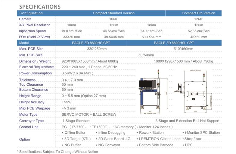 3D自動光學檢測儀利用LED燈光(紅、藍、白)打光, 高速CCD相機運動并拍照取像;通過光學反射和摩爾條紋原理,結合相位移動技術和2D+3D 的成像技術,檢測電路板上元器件在SMT過程中的品質問題。 高速度檢測和測量技術 EAGLES 9百萬 8投射 3D AOI系統對PCB進行100%的2D和 3D全檢。結合2D技術,保障完全無陰影光學檢測和低誤報率, 并保持高度靈活性的系統功能。